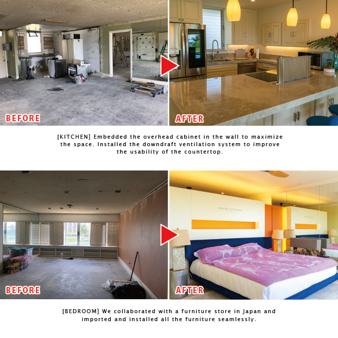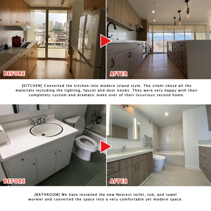 We have fully renovated an old condominium unit in Ala Moana area. We carefully designed and constructed to achieve the modern and clean finish. The embedded air conditional system made the space very simple and attractive.